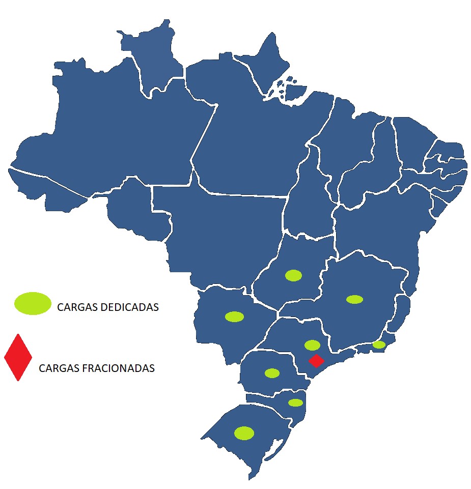 Atuamos com cargas dedicadas na região Sul e Sudeste e em cargas fracionadas para Capital e Interior 1 (raio de 100 km de nossa base).